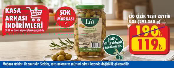 50 TL ve üzeri alışverişinize Lio Çizik Yeşil Zeytin ( S-xs 291-350) 900 g 119.00 TL!