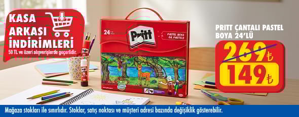 50 TL ve üzeri alışverişinize Pritt 24'lü Çantalı Pastel Boya 149.00 TL!