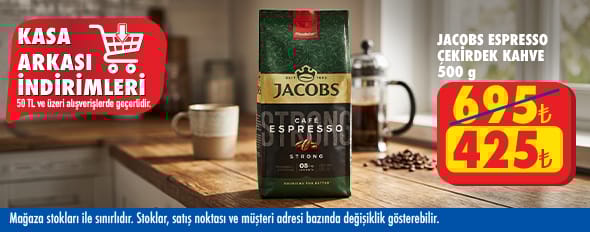 50 TL ve üzeri alışverişinize Jacobs Çekirdek Espresso 500 g 425.00 TL!