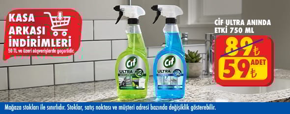 50 TL ve üzeri alışverişinize Cif Ultra Sprey Kireç Ve Pas Sökücü 750 Ml , Cif Ultra Anında Etki Kir Ve Yağ Çözücü 750 Ml 59.00 TL!