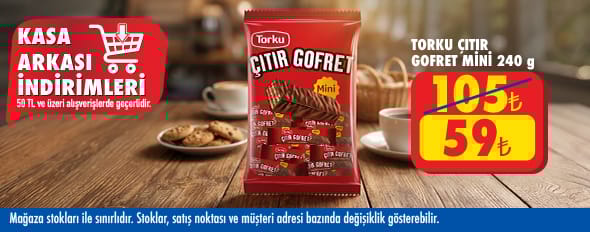50 TL ve üzeri alışverişinize Torku Çıtır Gofret Mini 240 G 59.00 TL!