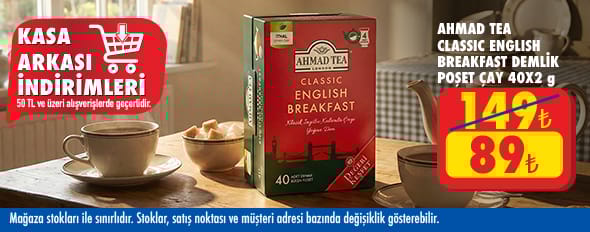 50 TL ve üzeri alışverişinize Ahmad Tea Englısh Breakfast Demlik Poşet 80 g 89.00 TL!