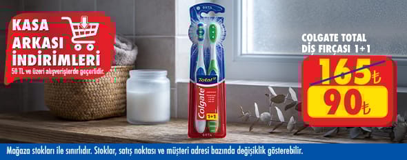 50 TL ve üzeri alışverişinize Colgate Total Orta Diş Fırçası 1+1 90.00 TL!