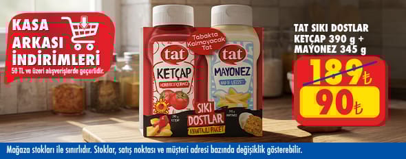 50 TL ve üzeri alışverişinize Tat Sıkı Dostlar 390g Ketçap & 345g Mayonez 90.00 TL!