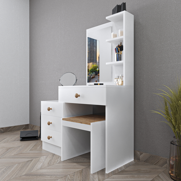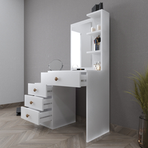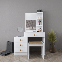 Lorven Çekmeceli Aynalı Puflu Makyaj Masası Beyaz