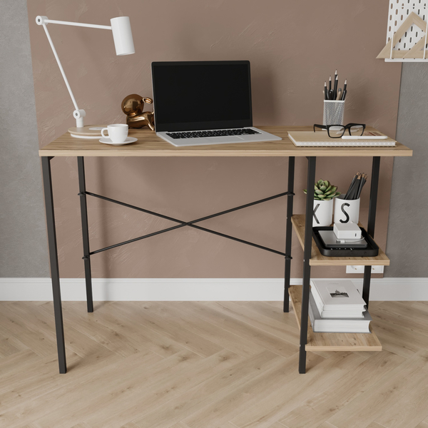 Sudem Metal Ayaklı Raflı Çalışma Masası - Meşe