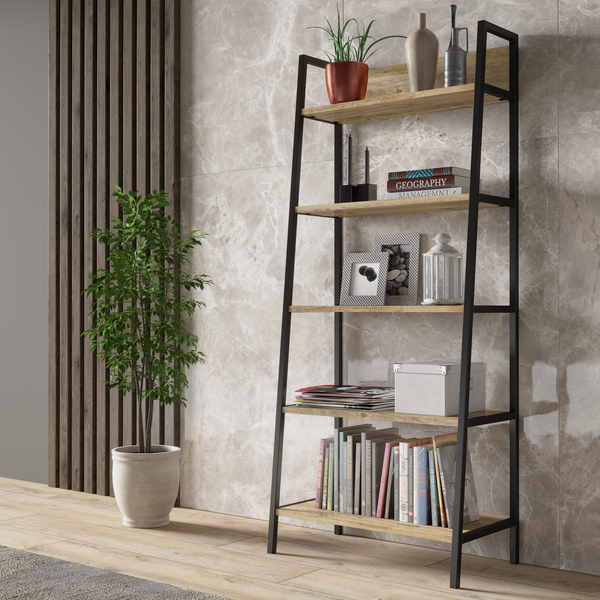 Zion Metalli Dekoratif 5 Raflı Kitaplık