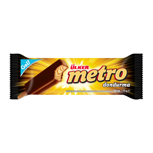 Golf Ülker Metro; sütlü çikolata kaplaması, karamel sosu ve karamelli dondurmasıyla çikolata ve karamel lezzetini bir araya getiriyor. Çikolata kaplaması ve karamel sosunun Golf dondurmasıyla buluşması, her lokmada zengin ve dengeli bir lezzet deneyimi sunuyor.