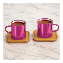 Ceo Pembe Aynalı Cam Fincan Seti