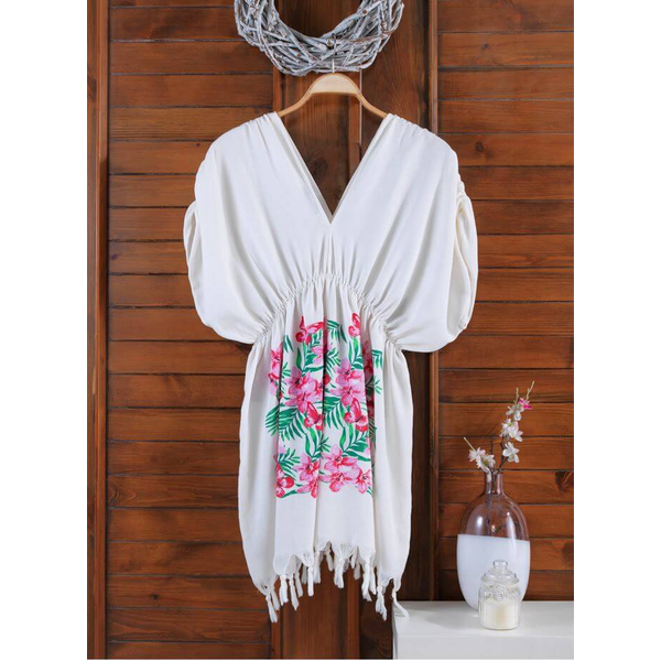 Plaj Elbisesi Viskon Büzgülü