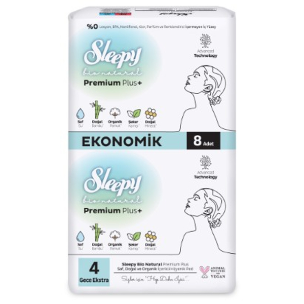 Sleepy Bionatural Premium Gece Extra Hijyenik Ped 8'li