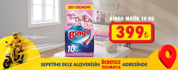 22-23 Nisan tarihleri arasında geçerlidir.Ücretsiz Teslimat, 300 TL ve üzeri alışverişlerde Bingo Matik Toz Deterjan 10 Kg ürün alımında geçerlidir.Limitlerle sınırlıdır.ŞOK Marketler T.A.Ş kampanyayı durdurma ve kampanya şartlarında değişiklik yapma hakkını saklı tutar.
